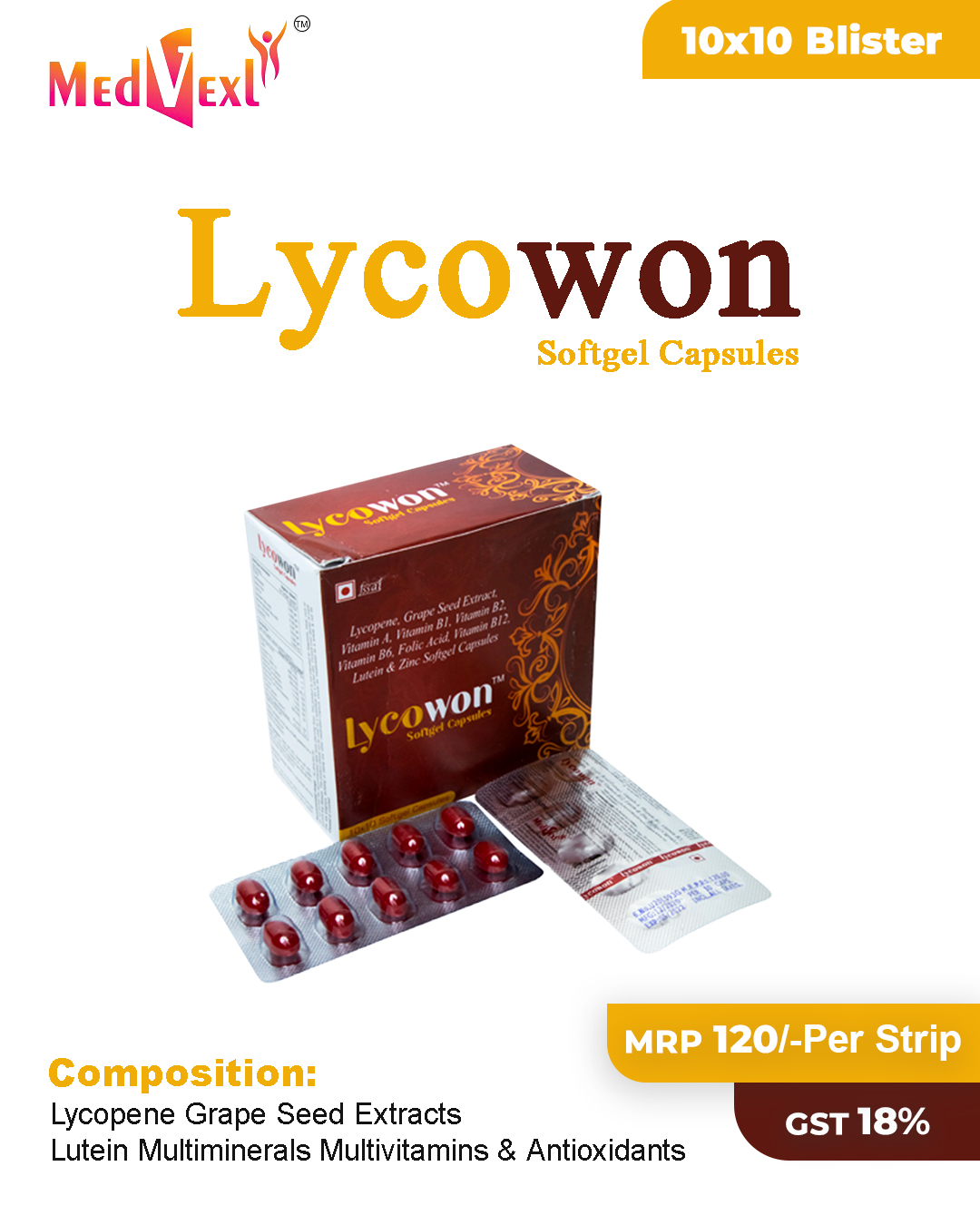 LYCOWON | 10*10 | Lycopene + Grape Seed Extracts + Lutein + Multiminerals + Multivitamins & Antioxidants Softgel capsule | Details |