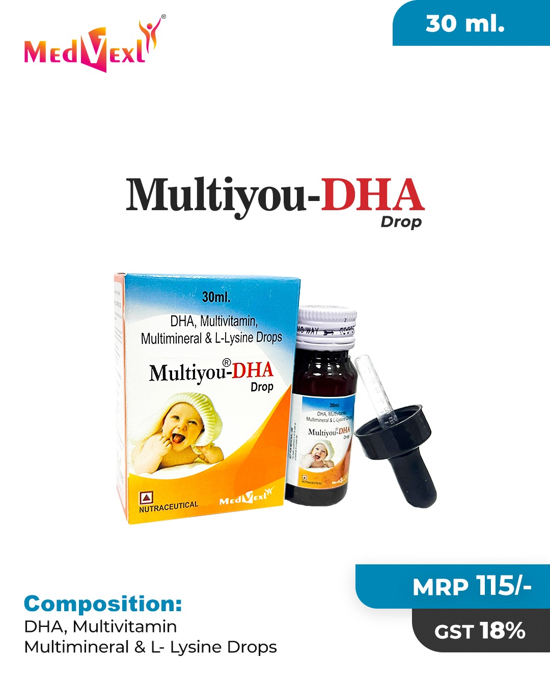 MULTIYOU®- DHA 30 ML DROP (MANGO FLAVOUR) | 30 ml | DHA, Multivitamin,Multimineral & L-Lysine (mango flavour) | Details |