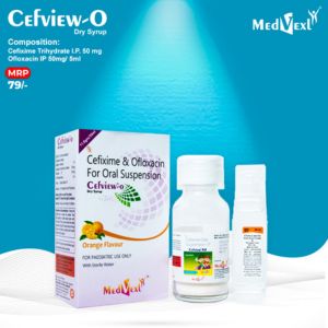 CEFVIEW -O D/S | 30 ml | Cefixime Trihydrate I.P. 50 mg + Ofloxacin IP 50mg/ 5ml (Dry Syrup with water) (Glass Bottle) | Details |