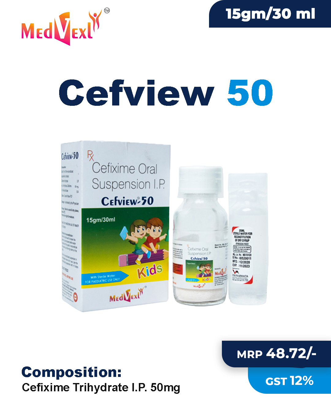 CEFVIEW -50 | 15gm/30ml | Cefixime oral suspension IP 50 mg | Details |