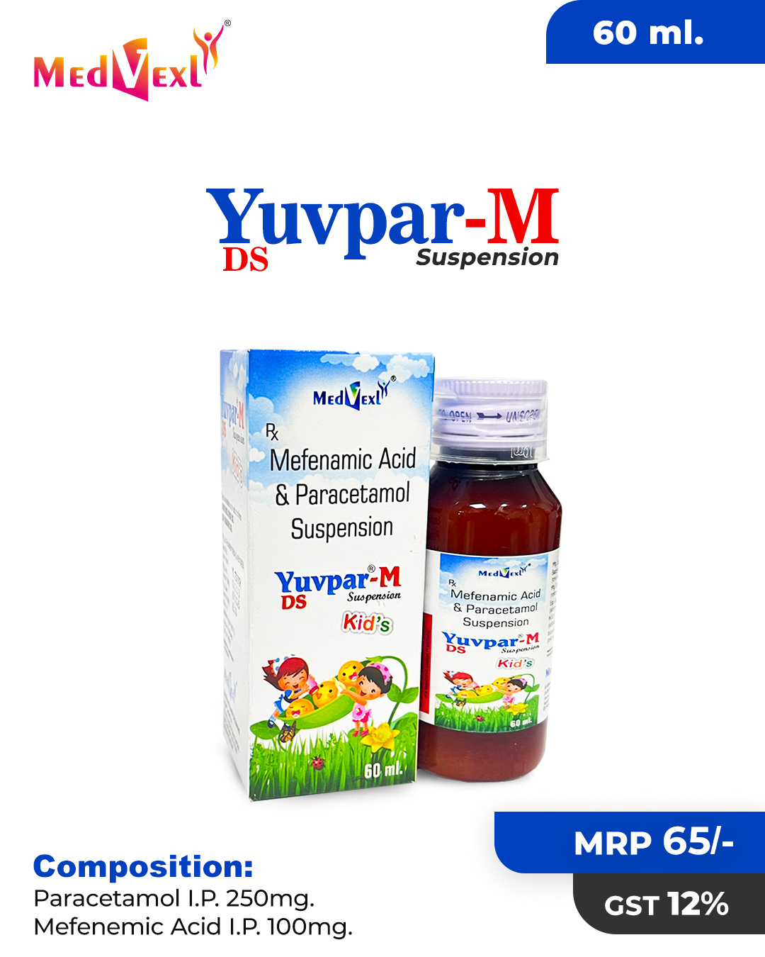 YUVPAR®-M DS | 60 ml | Mefenamic Acid 100 mg+ Paracetamol I.P. 250 mg (Susp.) | Details |