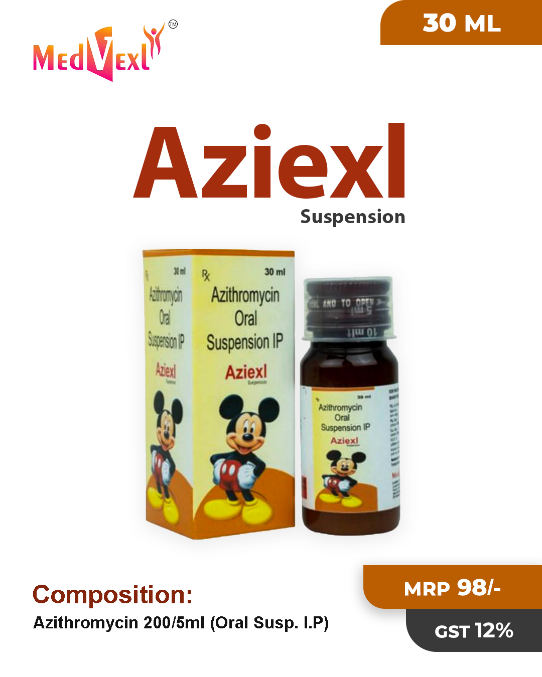 AZIEXL SUSP. | 30 ml | Azithromycin 200/5ml (Oral Susp. I.P) | Details |