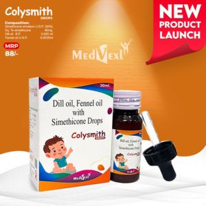 Colysmith Drops | 30 ml | Smiethicone emulsion U.S.P. (30%) + Eq. To simethicone 40mg + Dill oil B.P. 0.025 ml + Fennel oil U.S.P. 0.0035 ml | Details |